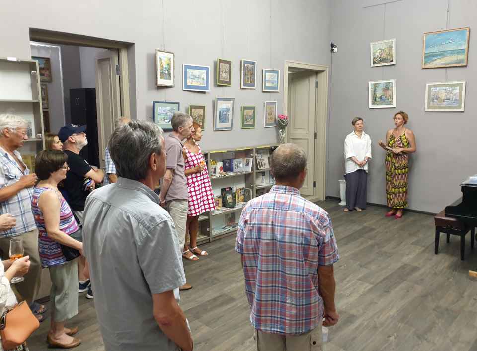 — Татьяна Романенко, кроме грамотного композиционного и цветового решения, привносит каждый раз в свои работы определенную стилизацию, благодаря чему пространство картин соткано из маленьких, но очень органичных элементов, — сказала, представляя художницу на вернисаже, галерист Екатерина Пименова. — Мозаичность фактуры превращает реальность в поэтичное художественное высказывание. Возвышающиеся над портом краны, суетливые чайки, легендарные шары Ланжерона. Улицы мерцают летними тенями, спешат по своим делам горожане, проплывает трамвай. Живописный ансамбль, в котором предстает город, напоминает о хрупкости, ценности и неповторимости одесского чуда. Это символичное воплощение уникального прошлого, трагического сегодня и, безусловно, светлого будушего Одессы.