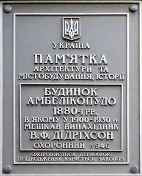 Більше про Василя Федоровича Дідріхсона читайте на нашому сайті «Вони залишили слід в історії Одеси»: https://odessa-memory.info/ua/index.php?id=172