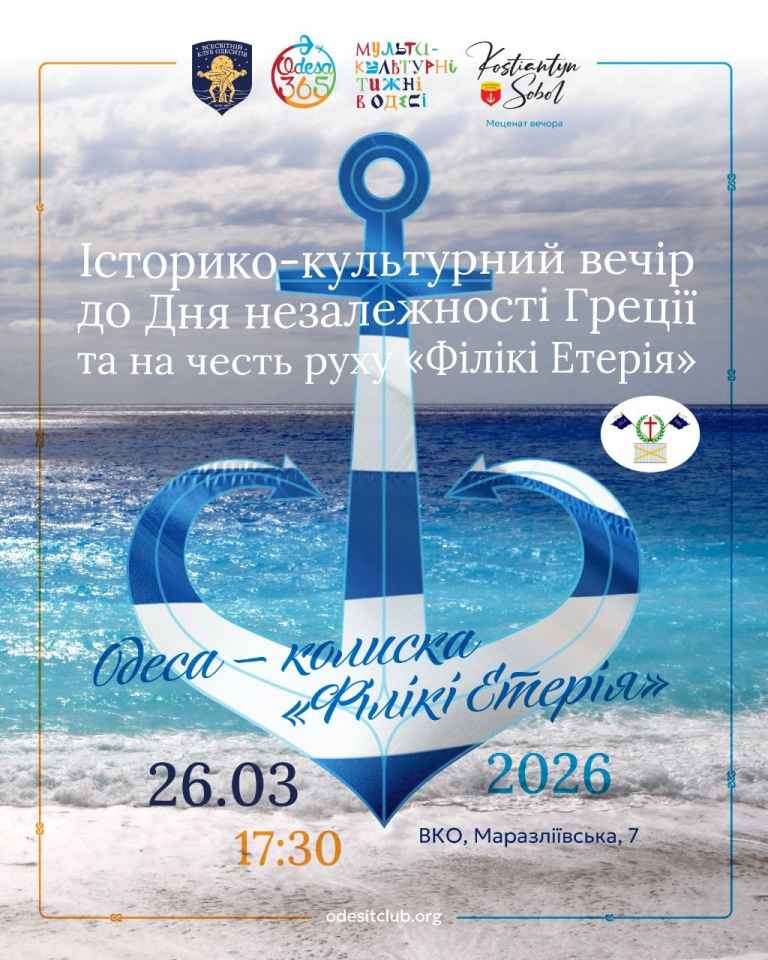 У Всесвітньому клубі одеситів відбувся теплий та натхненний історико-культурний вечір, присвячений 205-й річниці Дня незалежності Грецької Республіки та руху «Філікі Етерія»