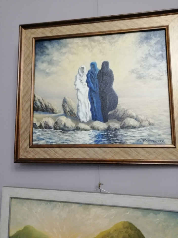 Власне, своїм "персоналкам" Сергій Михайлович дає завжди одну й ту саму назву. Піднесена тиша панує на цих дивовижних полотнах серед природи нетутешньої краси та за прихованими за довгими шатами постатями персонажів.