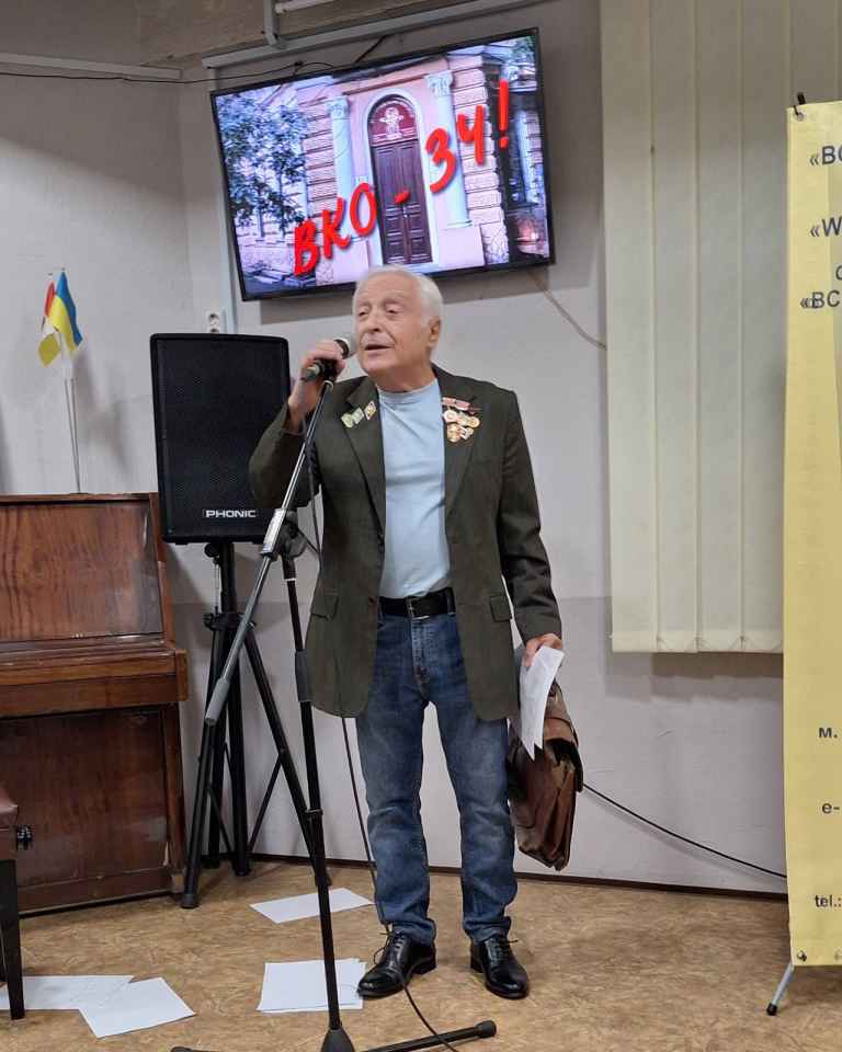 Так розпочався корпоратив присвячений 34-ій річниці створення ВКО. Продовжився він у приміщенні Клубу, з гімну України та гімну Одеси українською мовою у виконанні керівника Всесвітнього клубу молодих одеситів Єлизавети скорби.