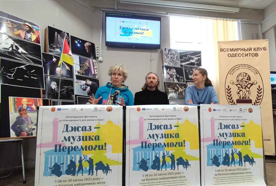 25 квітня у Всесвітньому клубі одеситів відбулася прес-конференція Олени Шевченко, Олексія Пєтухова та Майї Дімерлі, на якій вони розповіли про майбутні заходи фестивалю “Джаз - музика перемоги!”, присвяченого Всесвітньому дню джазу.